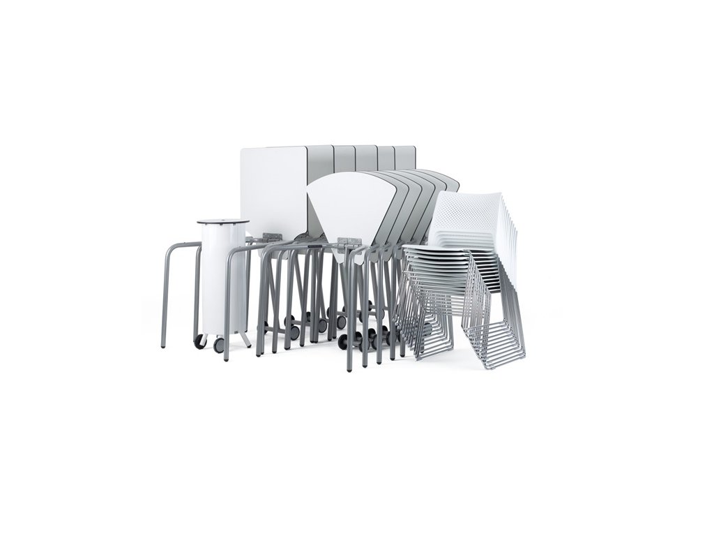 - Sestava lichoběžníkových stolů s výřezem tvořící kruh
